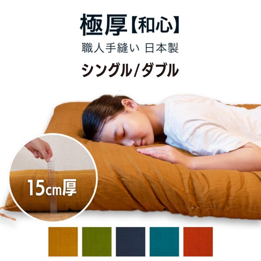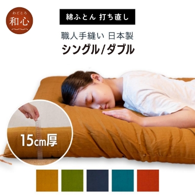 木綿は、ポリエステルの20倍もの吸水性があり、天日干しのケアで吸水機能が長く保ちます。毎日の睡眠で少しずつへたりますが、打ち直しをすればふわふわの布団に蘇ります。