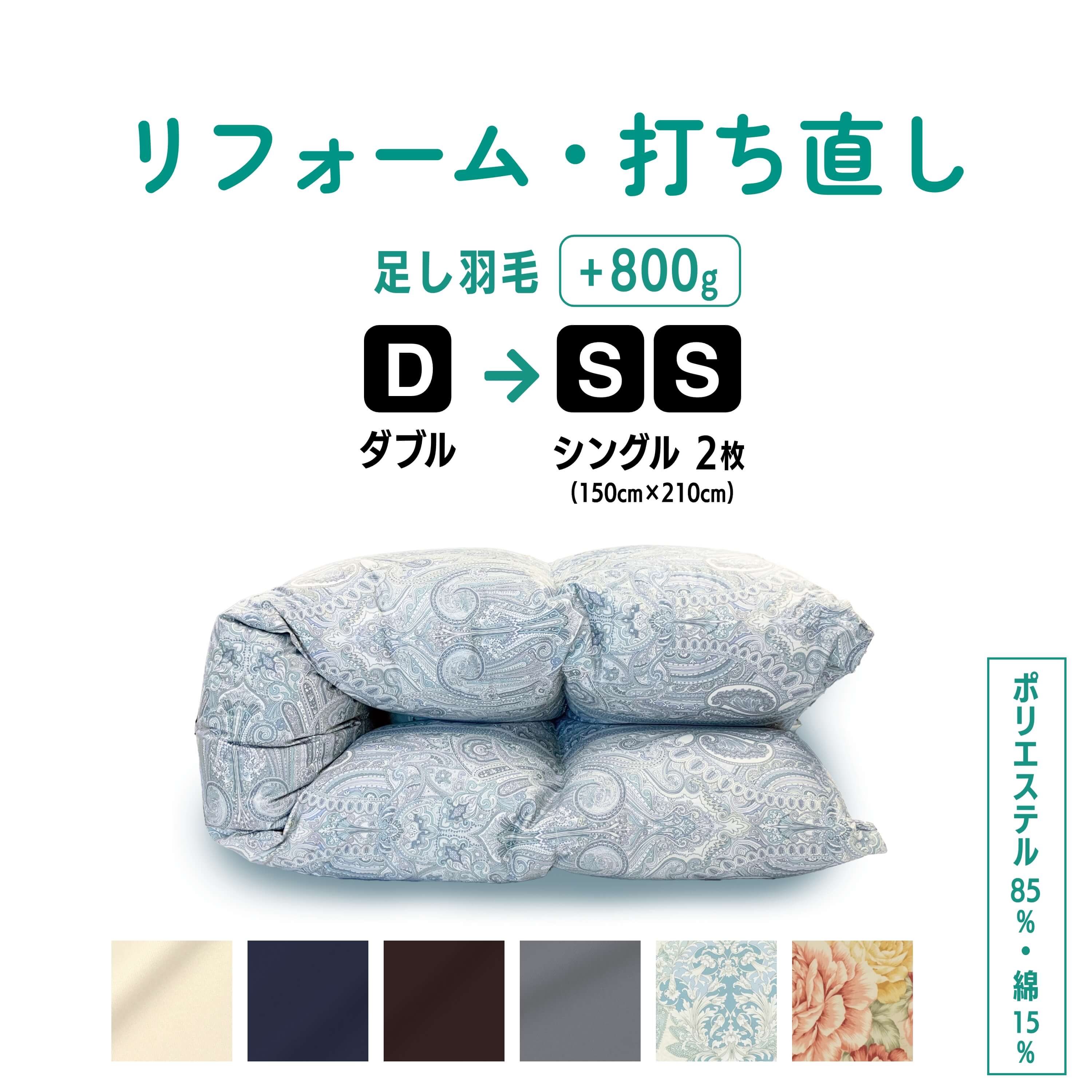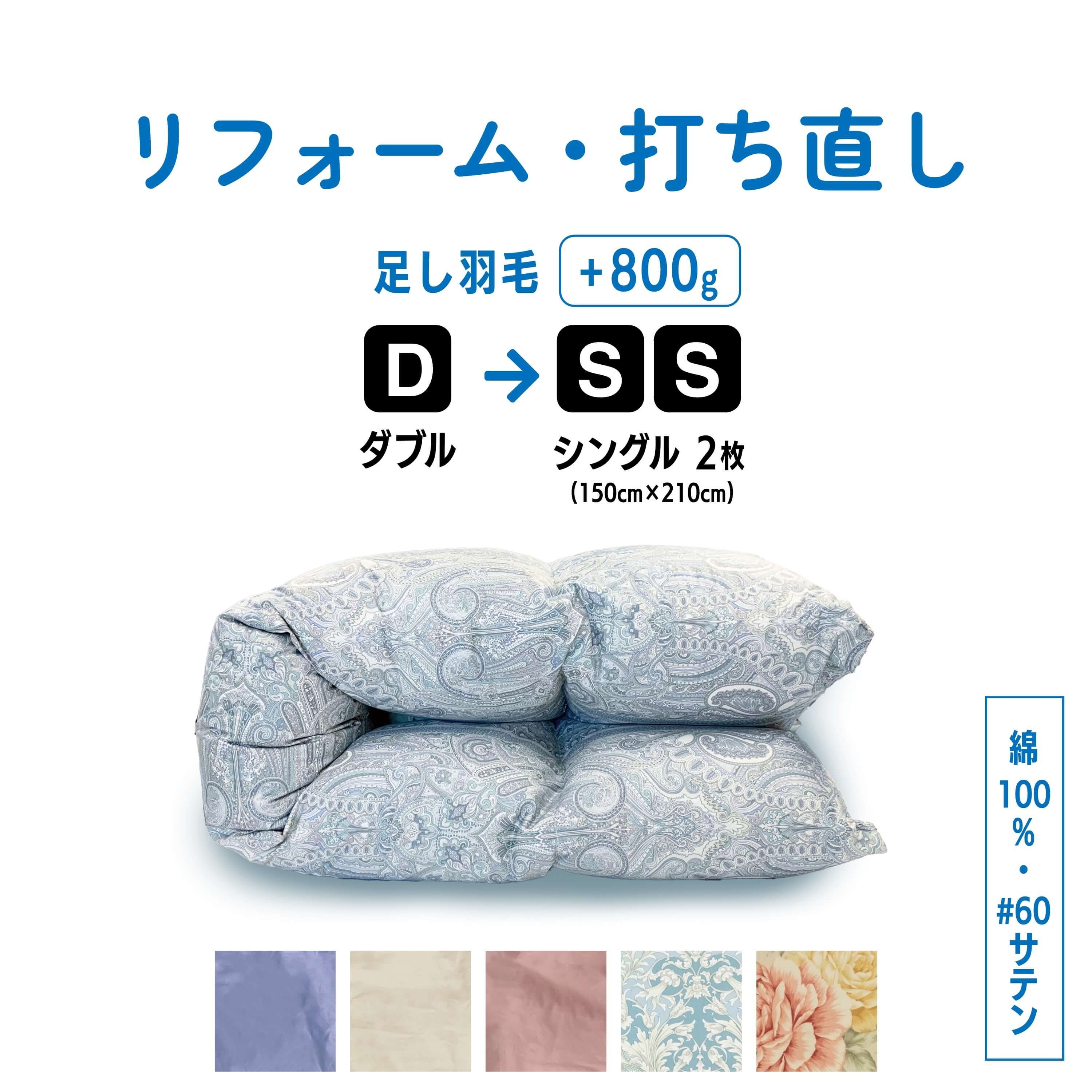 ご実家・ご自宅の押し入れに眠ったままのお布団、そんなお布団の中にも貴重な天然素材の羽毛や綿が含まれていることがほとんどです。高価なものだからこそ出来れば使いたい、だけど年季が入りすぎて、使うのをためらってしまう…。他のサイズ・アイテムなら使えるのにな…。と思われる方におすすめのリサイズサービス。サイズ違いのお布団はもちろん、アウトドア&防災用に大活躍の寝袋にもリフォームできます!廃棄よりも活用してみませんか♪